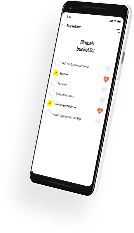 We've created a positive tool that allows your contacts to view and like things on your bucket list (e.g. go skydiving). They'll also see once you've completed something!